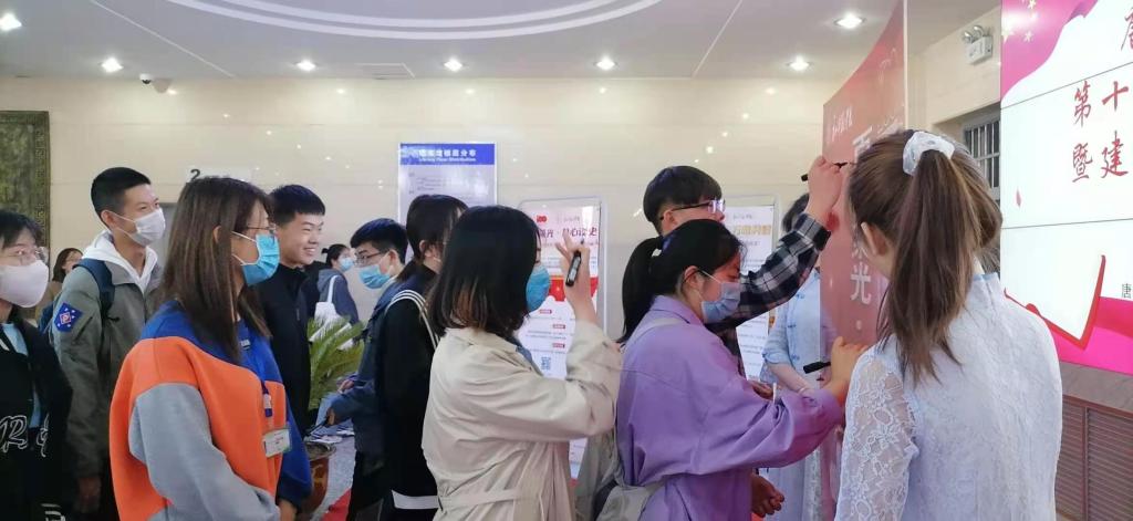 最后,各位领导分别在“百年荣光·浸润书香·续梦启航”主题签名板上签名,传达对广大莘莘学子“多读书,读好书”的期待,各位同学也纷纷在签名板上签名,用实际行动树立起新学期的阅读flag。