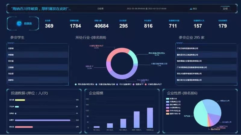 为深入贯彻党中央、国务院“稳就业、保就业”的工作部署,落实教育部“2021届全国普通高校毕业生就业创业工作网络视频会议”精神,切实做好w88win官网2021届毕业生就业工作,3月9日、10日,w88win官网以“易校招”为载体,成功举办了“海纳百川终破浪,厚积薄发在此时”w88win体育官网“春风送岗位”春季线上综合双选会。