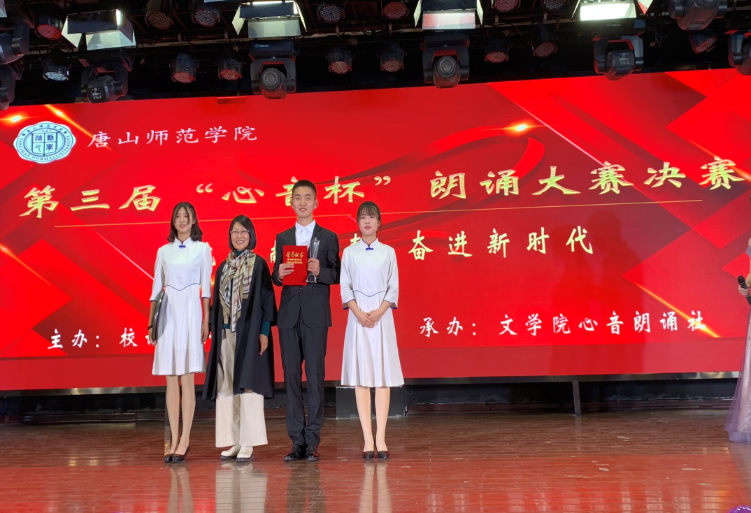 担任决赛评委的有唐山广播电视台高级记者、全国一级播音员马文蕊、校语委办主任侯建华、国家级测试员王悦、文学院党总支副书记鲁芳、文学院学工办主任曹丽娜。各教学单位300多名学生到场观看了比赛,见证了选手们的荣誉时刻,倾听了专家的精彩点评和专业讲解。
