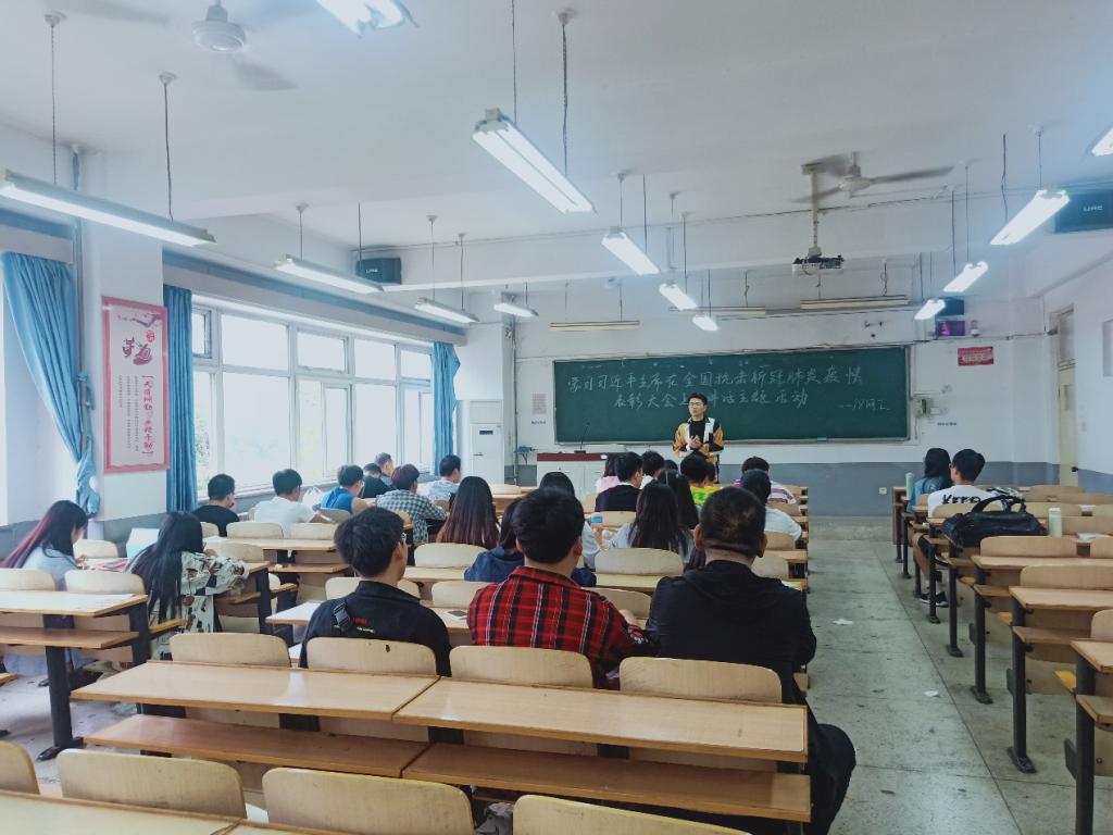19级数学与应用数学本科三班团支部吴浩楠说,生命至上、举国同心、舍生忘死、尊重科学、命运与共。习近平总书记在讲话中凝练总结的伟大抗疫精神,是中国精神的生动诠释,丰富了民族精神和时代精神的内涵。中国的抗疫斗争,充分展现了中国精神、中国力量、中国担当。“共和国勋章”获得者钟南山表示:“这次授勋绝对不是对我一个人,是对整个医疗卫生界、防控系统人员的一个极大的认可、肯定和尊重。为什么中华民族、中国人总是压不垮,这是什么原因?首先是有一个精神,只要一个民族有这样的精神,他永远压不垮。”面对突如其来的严重疫情,广大医务人员以白衣为铠甲、逆行出征。军队医务人员视疫情为命令,召之即来,来之能战,战之能胜。回首一线人员在火神山医院奋战的几十个日日夜夜,我觉得这五句话的精神是抗疫的写照,也是我们的时代精神和民族精神,都应该被牢记、传承、发扬光大。对于我们进一步强化责任,增强担当,不忘初心、牢记使命具有很重要的意义。