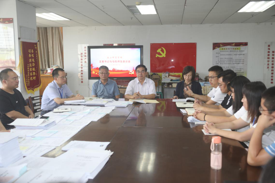 2020年9月7日,党委书记王英来到教育学院、马克思主义学院参加师生座谈会。办公室、教务处、教育学院、马克思主义学院等单位负责人进行陪同。