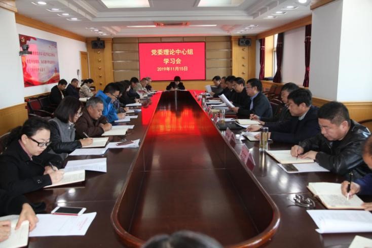 党委副书记姜瑞林领学《中国和平发展的世界意义》、纪委书记李同义领学《从全局高度理解和把握世界百年未有之大变局》等学习材料,与会领导认真学习记录。