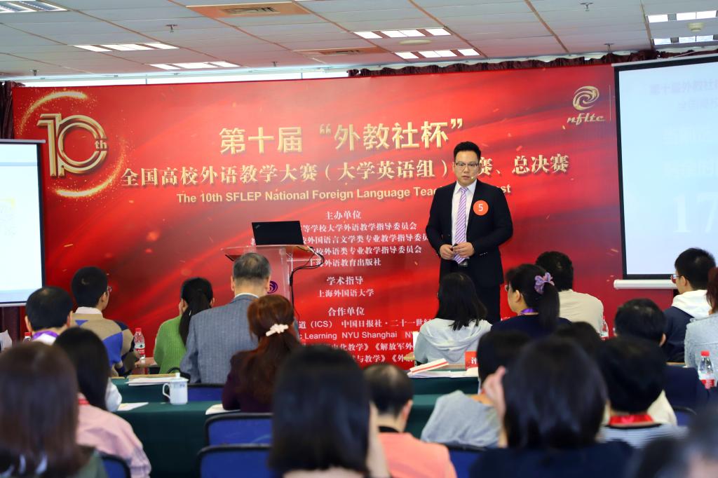 全国高校外语教学界顶级赛事——第十届“外教社杯”全国高校外语教学大赛总决赛于2019年11月1日在上海正式开赛。w88win官网外语系青年教师赵鹏获得本年度全国高校外语教学大赛总决赛三等奖。