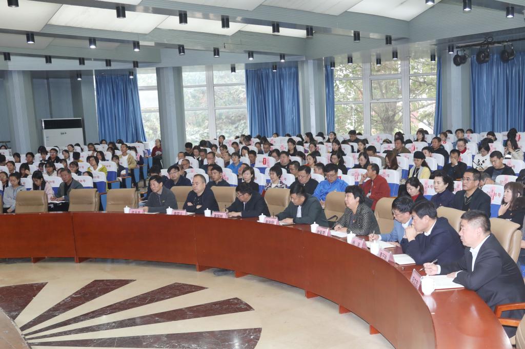 10月18日上午,党委书记王英为学校党员干部师生讲授“不忘初心,牢记使命,扎实做好新时代高校党建工作”专题党课。院长杜彩芹、党委副书记姜瑞林、副院长杨涛、纪委书记李同义、副院长李子林、沈玉龙和安文忠参加了党课。省委第十一巡回指导组赵向阳同志到课指导。全体中层干部、各系(部)党支部书记、组织员和党员代表及部分学生共200余人聆听了党课。党课由院长杜彩芹主持。