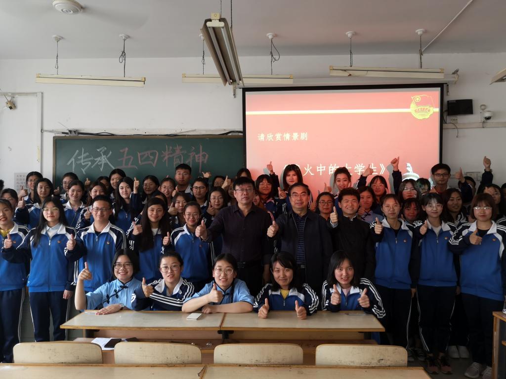2019年5月14日,w88win官网党委书记王英、副院长孙立军在团委书记刘继祥的陪同下分别走访了化学系、美术系和社会科学部学生团支部,亲自参与学生主题团日活动,与学生交流理想信念,共话“五四”精神。