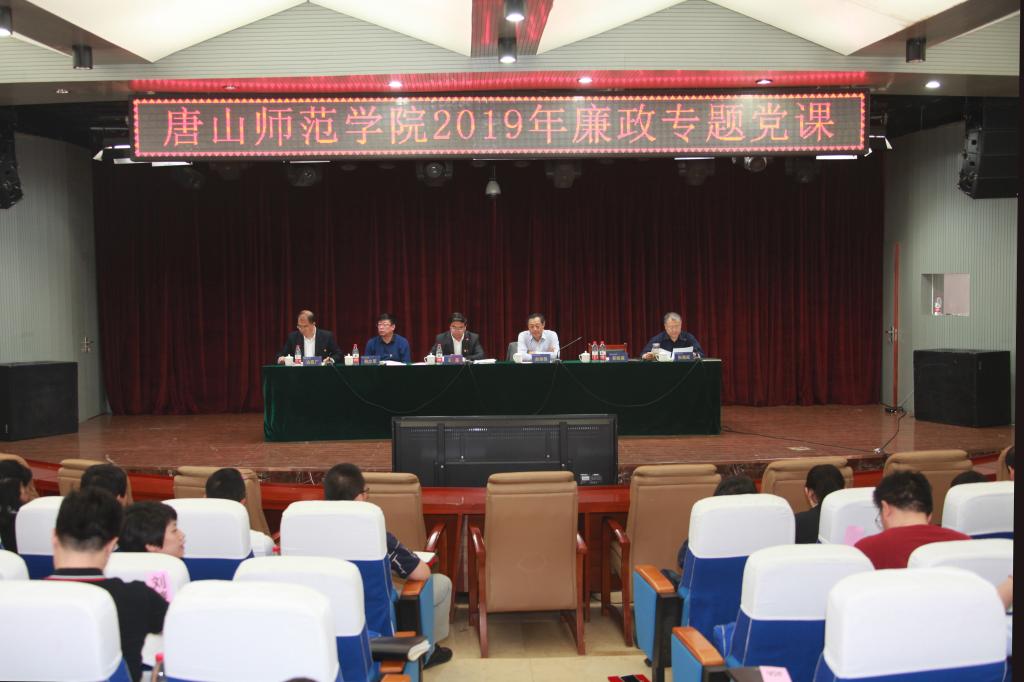 王英书记总结了学校过去一年党风廉政建设情况,深入剖析了当前学校党风廉政建设和全面从严治党的严峻形势,并对学校各级党组织和领导干部提出四点明确要求:一是要坚定政治站位,始终做到对党绝对忠诚。王书记指出,作为党员领导干部,要把讲政治作为第一遵循、第一标准、第一要求,强化政治引领,增强政治意识,淬炼政治能力,始终保持政治上的清醒和坚定。王书记结合学校2019年将要做好的重点工作,激励广大干部干事提振精气神,汇聚发展正能量,积极融入打造唐山教育高地战略,切实为唐山地方经济社会发展服务,并以新担当新作为让学校改革发展成果更多更好惠及师生,不断提高师生满意度;二是加强党性锻炼,永葆共产党人政治本色。王书记指出,党性是党员干部立身、立业、立言、立德的基石。党员领导干部一定要做到严以修身、严以用权、严于律己,不断提升自我净化、自我完善、自我革新的能力,老老实实做人、踏踏实实干事;三是落实“两个责任”,从严从实推进管党治党。王书记从强化责任担当、强化教育管理、强化建章立制、强化执纪问责四个方面就落实管党治党的政治责任进行了详细阐述;四是优化政治生态,凝聚建设高水平师范大学强大合力。王书记要求全校广大党员领导干部要紧紧围绕学校三项中心工作,时刻把职责记在心上、扛在肩上、抓在手上,把全部心思和精力用在学校的改革发展上,带动广大党员干部教师,形成上下联动、齐心协力抓高质量发展的生动局面,以优异成绩庆祝中华人民共和国成立70周年。
