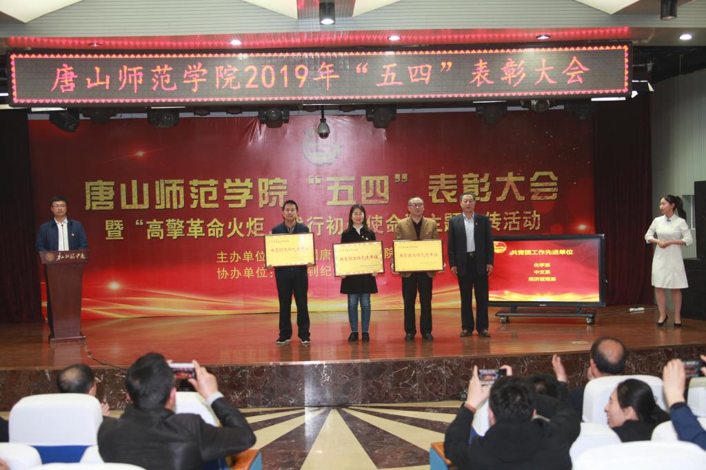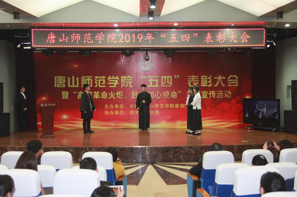 今年是五四运动100周年,李大钊同志诞辰130周年,也是新中国成立70周年,全校各级团学组织和团员青年,将以此次表彰大会的召开为契机,不忘初心,牢记使命,高举团旗跟党走,在校党委领导和上级团组织的指导下,不断推动w88win官网共青团事业在继承中创新和发展,为学校早日建成现代化、开放性、高水平唐山师范大学做出新的更大的贡献,以优异成绩迎接新中国七十华诞!