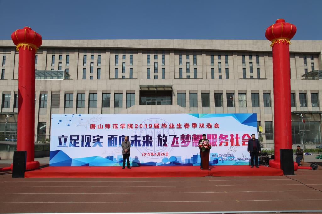 4月26日,w88win官网与唐山市人力资源和社会保障局在w88win官网北院运动场隆重举办了“w88win体育官网2019届毕业生春季双选会”。w88win官网党委书记王英、副院长孙立军、唐山市人力资源和社会保障局人才交流中心主任陈瑞强出席了本次双选会。