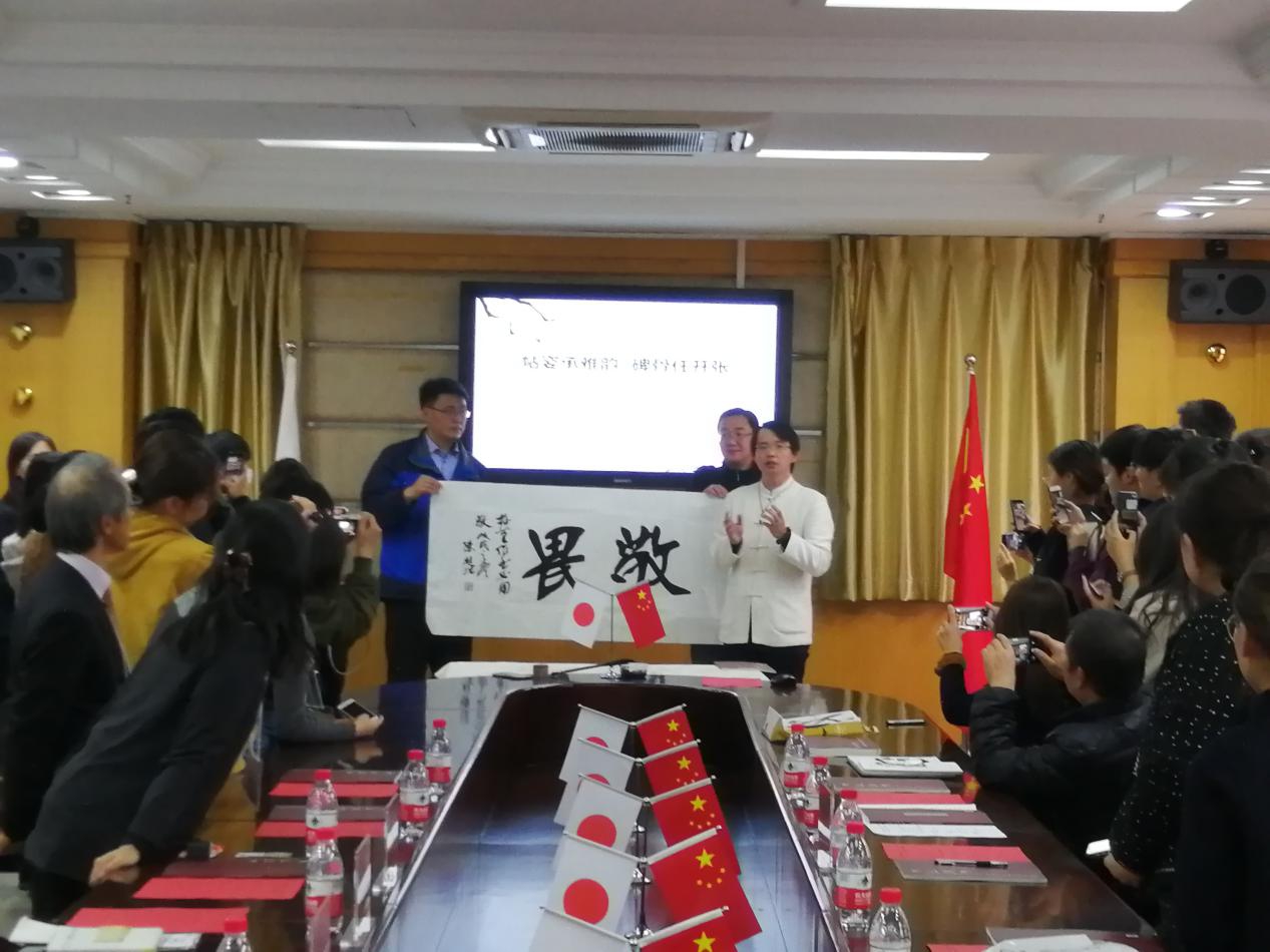 2018年11月6-7日,以加藤可奈卫教授为团长的日本大阪教育大学中日文化研修团师生共18人来到w88win官网,与w88win官网美术系、中文系、外语系领导、教师及学生代表就中国传统书法文化进行了学术交流互访活动。