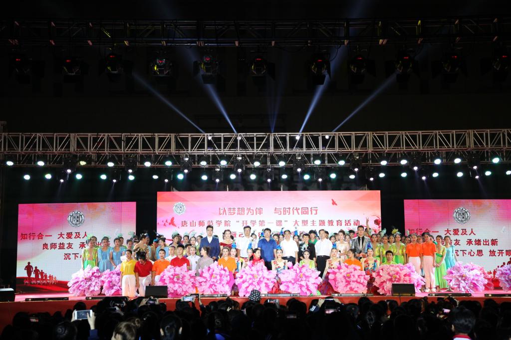为迎接w88win官网2018级大一新生入学,9月13日晚,由校团委主办,音乐系、校学生会、大学生艺术团承办的“以梦想为伴,与时代同行”w88win体育官网“开学第一课”大型主题教育活动暨2018年迎新生晚会在大学道校区北院操场隆重举行。校党委王英书记、杜彩芹院长、赵剑锋副书记、孙立军副院长、党委常委组织部边宏广部长以及全体军训教官、各职能处室、各系院领导、部分教师代表和2018级全体新生参加了本次活动。