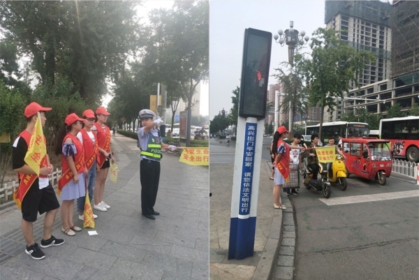 每天早上七点,志愿者集合完毕共同前往建设路与长宁道口协助交警在人行路上指挥交通,服务分为两个时间段,上午七点半到八点半,下午五点半到六点半。每次四名志愿者头戴红帽、身穿红马甲、手执黄色引导旗,在路口协助交警进行交通疏导,引导市民文明出行。志愿者们冒着酷暑,在斑马线前随时向有困难的群众伸出援手,纠正各种不文明出行习惯,赢得了广大市民的赞誉。