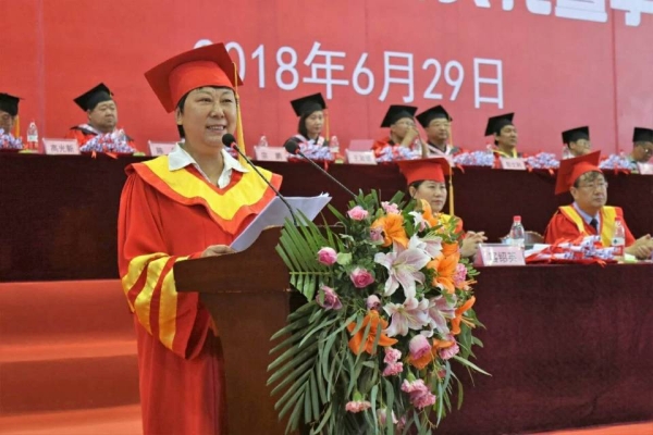 接着,杜彩芹院长作了题为《不负青春韶华 做新时代的奋斗者》的讲话。她代表学校向2018届毕业生表示热烈祝贺,向辛勤耕耘的老师们表示衷心感谢。杜院长肯定和赞扬了毕业生四年来对学校的无私付出,殷切叮嘱毕业生要志存高远、德才并重、情理兼修、勇于开拓,要不忘初心、不辱使命、不负青春,在苦干实干中涵养家国情怀,在不懈奋斗的道路上勇挑重担,勇立潮头,勇攀高峰;心怀感恩,珍惜韶华,乐观向上,厚积薄发,做知识的传播者,做美德的弘扬者,做文化的传承者。最后,杜院长满怀深情地对全体毕业生表示:前行路上,w88win体育官网永远是大家最温暖、最可靠的港湾,欢迎大家常回家看看!杜院长的讲话将毕业典礼推向高潮,会场多次响起热烈的掌声。