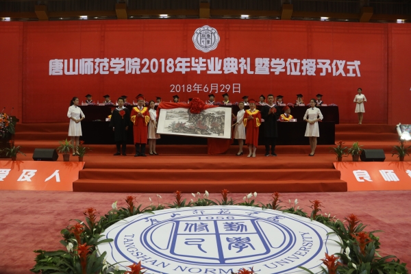 毕业典礼开始前,由12名毕业生奉献了歌曲联唱。在一首唐山师院版《那时再唱给你听》的大合唱中,毕业典礼隆重开始。
