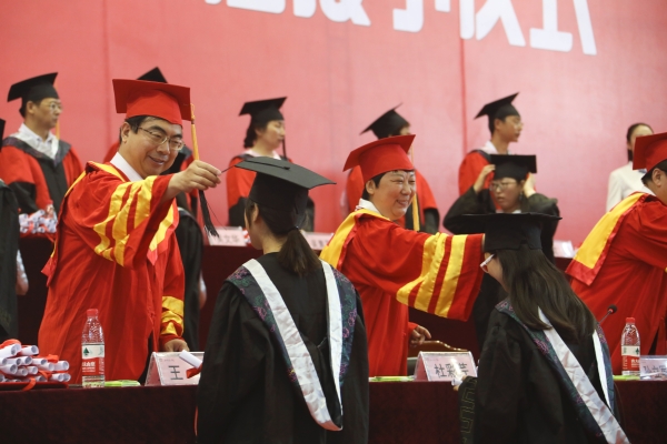 毕业典礼结束后,举行了本科生学士学位授予仪式。校领导与校学术委员会的教授们为每位本科生正冠拨苏、授予学位。