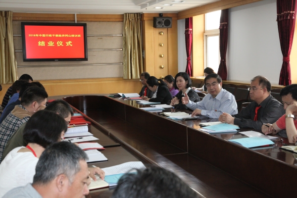 2018年5月8日,w88win官网行政干部赴井冈山党性锻炼培训班结业仪式在主楼五层会议室举行。党委书记王英、党委常委边宏广出席了仪式,组织部、党校主要负责人及培训班全体学员参加了会议。