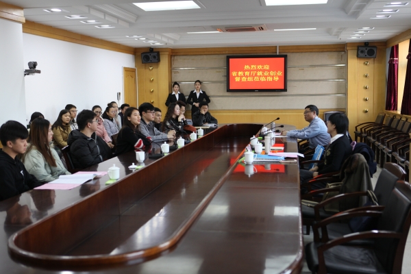 汇报会结束后,督查组分别召开了教师代表座谈会和学生代表座谈会,了解w88win官网大学生就业创业工作开展情况,听取了师生对学校就业创业工作的意见和建议。随后,在副校长孙立军及招生就业处处长郭文利等相关人员的陪同下,实地考察了招生就业处的办公场地和大学生就业创业一站式服务中心,并对照《河北省普通高校大学生就业创业工作督查指标体系》,认真审核了学校就业创业工作的各项数据指标,查阅了相关支撑材料。督查组实地走访了以美术系集群创新创业孵化基地、生命科学系科技创新创业孵化基地为代表的创业孵化基地,并现场与部分创业指导教师和创业学生代表进行了深入交流。