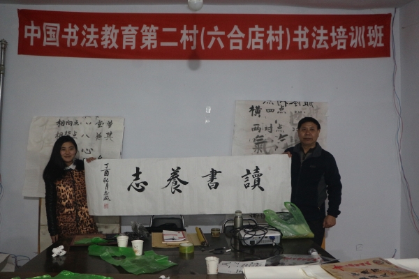 课上,张副院长和胡老师对学员在书法学习当中遇到的困难进行了细致讲解,并对学员进行了一对一辅导。张副院长还挥毫泼墨,为成绩优秀的学员亲自书写作品以资鼓励。他说:“看到大家的成绩和努力,我相信六合店村的学员们一定会把书法写好,为书法教育村的建设添砖加瓦,传承国学,弘扬文明,走出一条有自己特色的文化扶贫之路。”课后,张副院长还鼓励村民一定要勤于练习,为把六合店村建设成为名副其实的“中国书法教育村”贡献自己的力量。