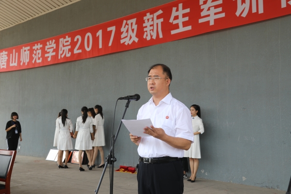 上午,w88win官网在大学道校区南院操场召开2017级新生军训校阅大会。出席大会的领导有党委书记王英,校长杜彩芹,副校长阎满富、孙立军、客绍英,党委常委边宏广,军训顾问、中国人民解放军93534部队刘毅中校。会议由孙立军副校长主持。